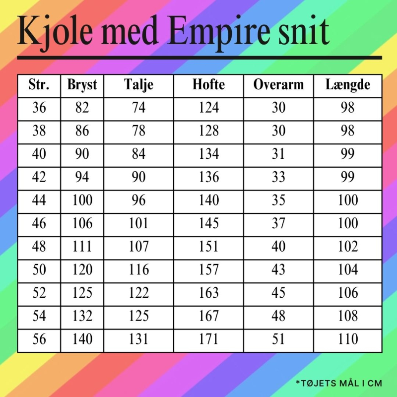 Størrelsesguide - Empire kjole