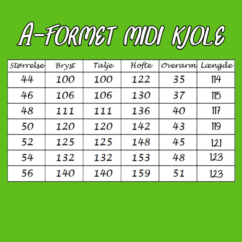 Saki er en A-formet midi kjole med langde til ca. midt på læggen.