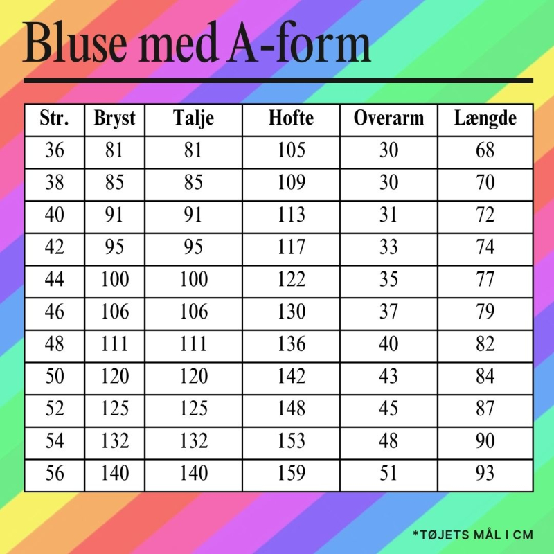 Størrelsesguide - A-formet bluse fra Amamiko
