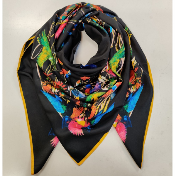 Stort kvadratisk Silke Tørklæde - Sort Kolibri