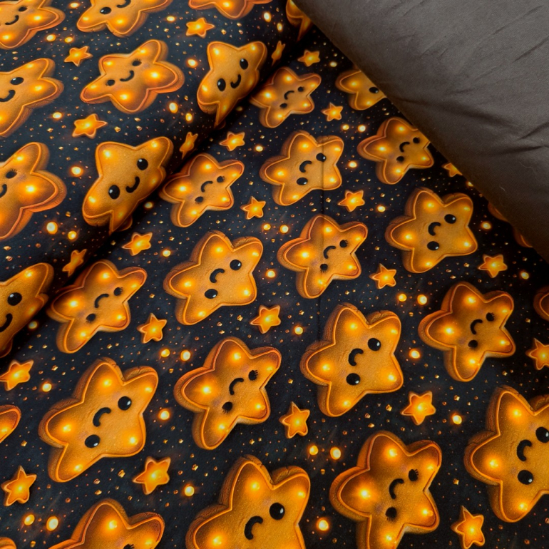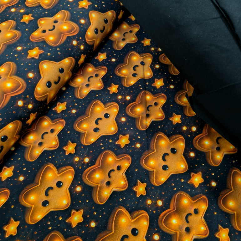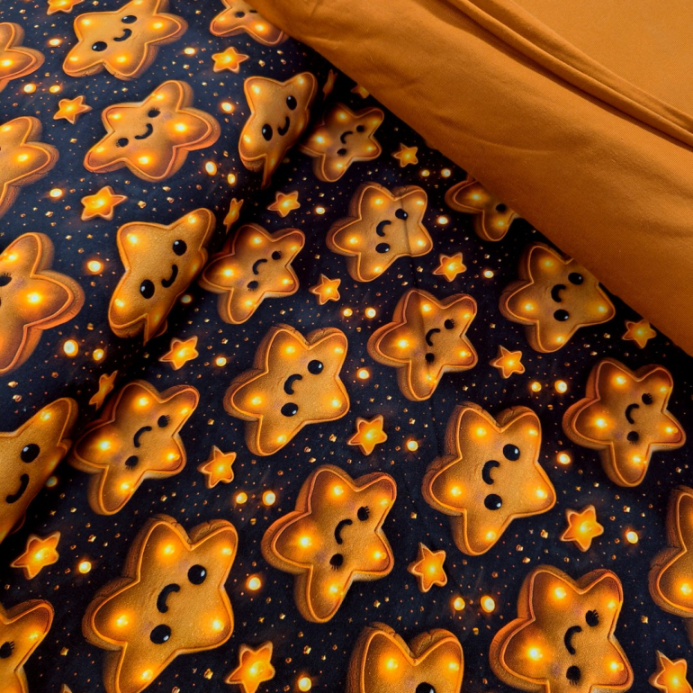 Til Star Cookies stoffet anbefaler jeg sort, cognac eller brun som kantbånd.
